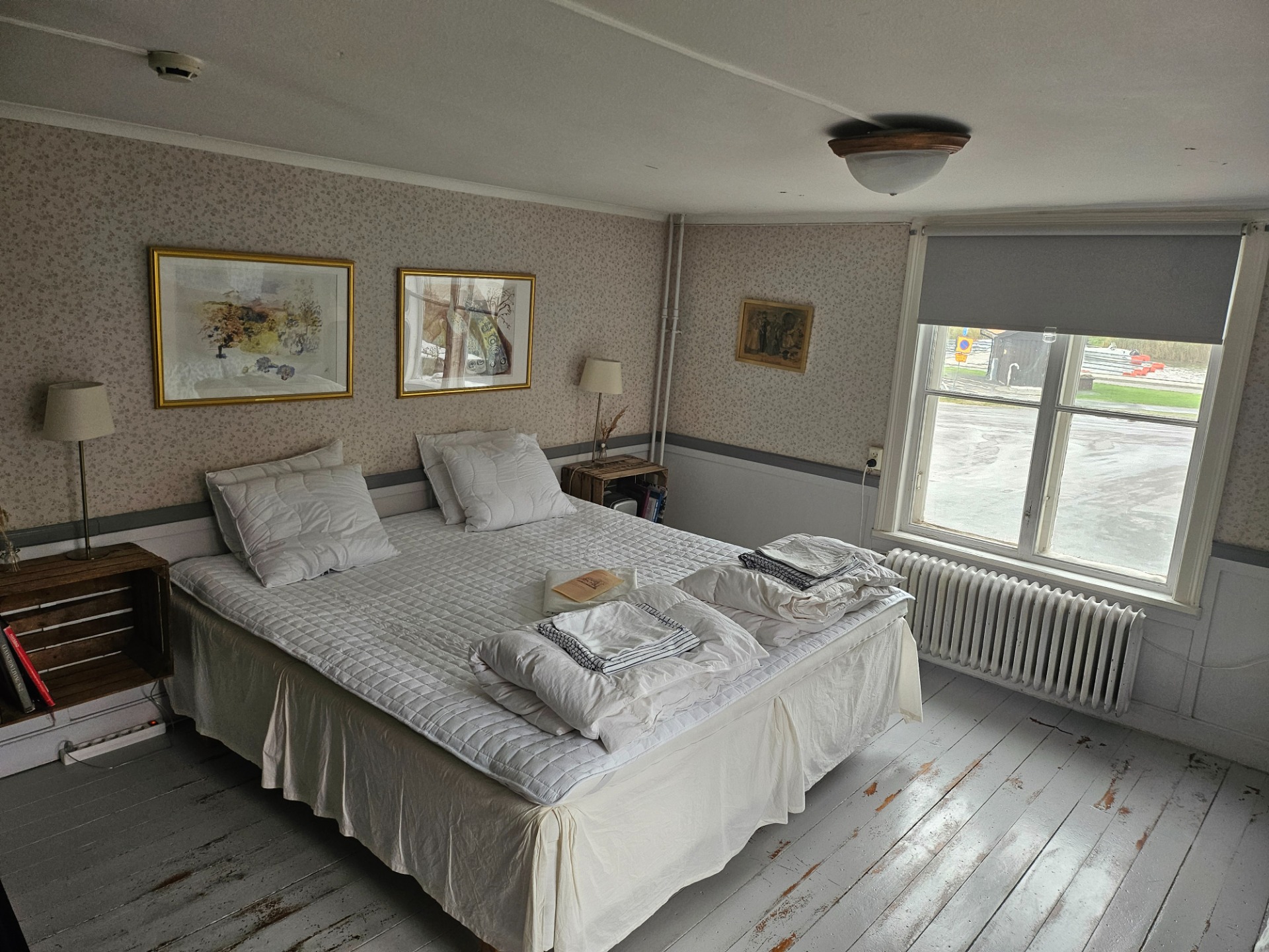 Vi har sex rum, varav ett enkelrum, två små dubbelrum, ett trebäddsrum och två fyrbäddsrum. Både fyrbäddsrummen och trebäddsrummen går att använda som dubbelrum, de har en stor dubbelsäng och en våningssäng resp. enkelsäng. Trebäddsrummet och ett av fyrbäddsrummen har sjöutsikt. Samtliga rum har handfat på rummet. Lakan ingår i priset, du bäddar själv när du kommer. Dusch, toalett och TV finns i korridoren/gemensamma utrymmen. Huset har stort kök och kylskåp som man har tillgång till när man bor hos oss.